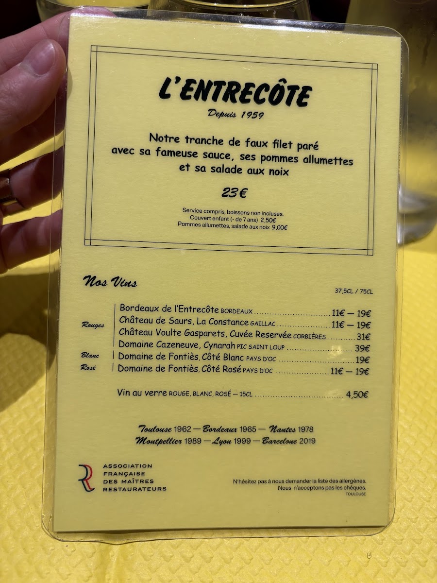 Welcome to L'Entrecôte, located at 15 Bd de Strasbourg in Toulouse, where simplicity meets delight in a unique dining experience. The restaurant's appeal lies in its fixed menu, which features their renowned steak and fries, showcasing tender and juicy meat paired with a secret sauce that many guests describe as "to die for." Diners appreciate the ease of choosing from only one option, eliminating indecisiveness and making each visit straightforward yet satisfying.